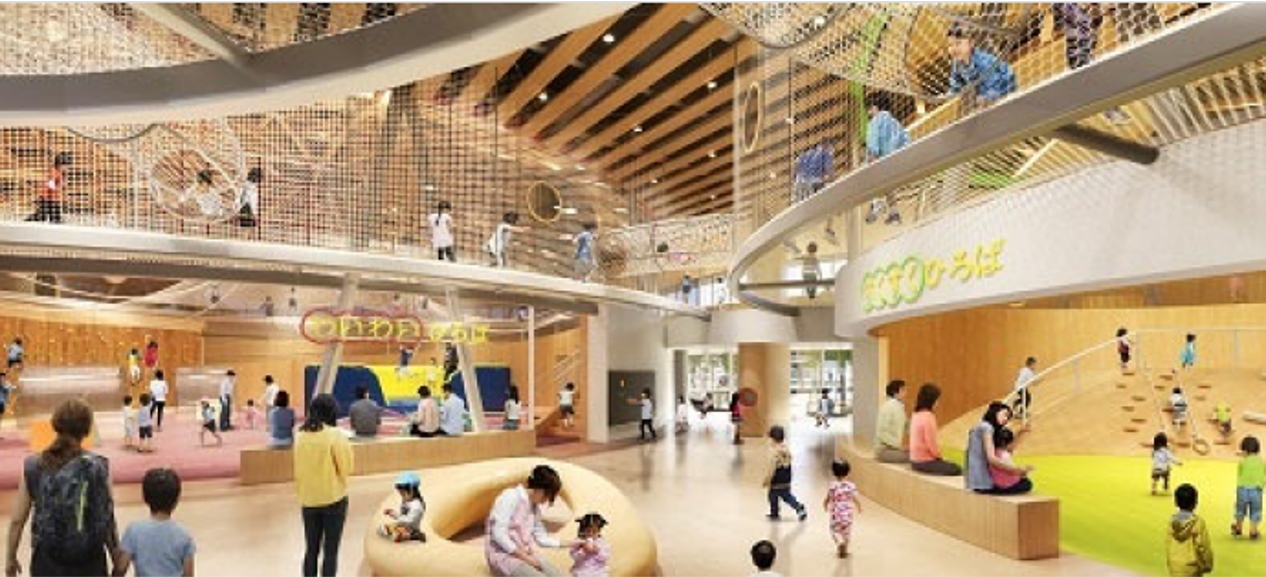 子育て支援 自治体事例|全天候型子ども遊戯施設を新設、既存施設を「科学と遊びの森」にリニューアル、大学跡地を「木育」をテーマとした複合施設に