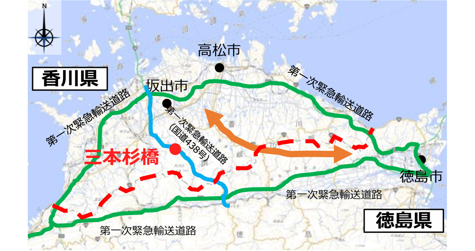 国道438号の三本杉橋(香川県仲多度郡まんのう町)は、香川県と徳島県を結ぶ第1次緊急輸送道路上にある重要な橋梁ですが、老朽化が進んでおり、早期に対策が必要となっていました。