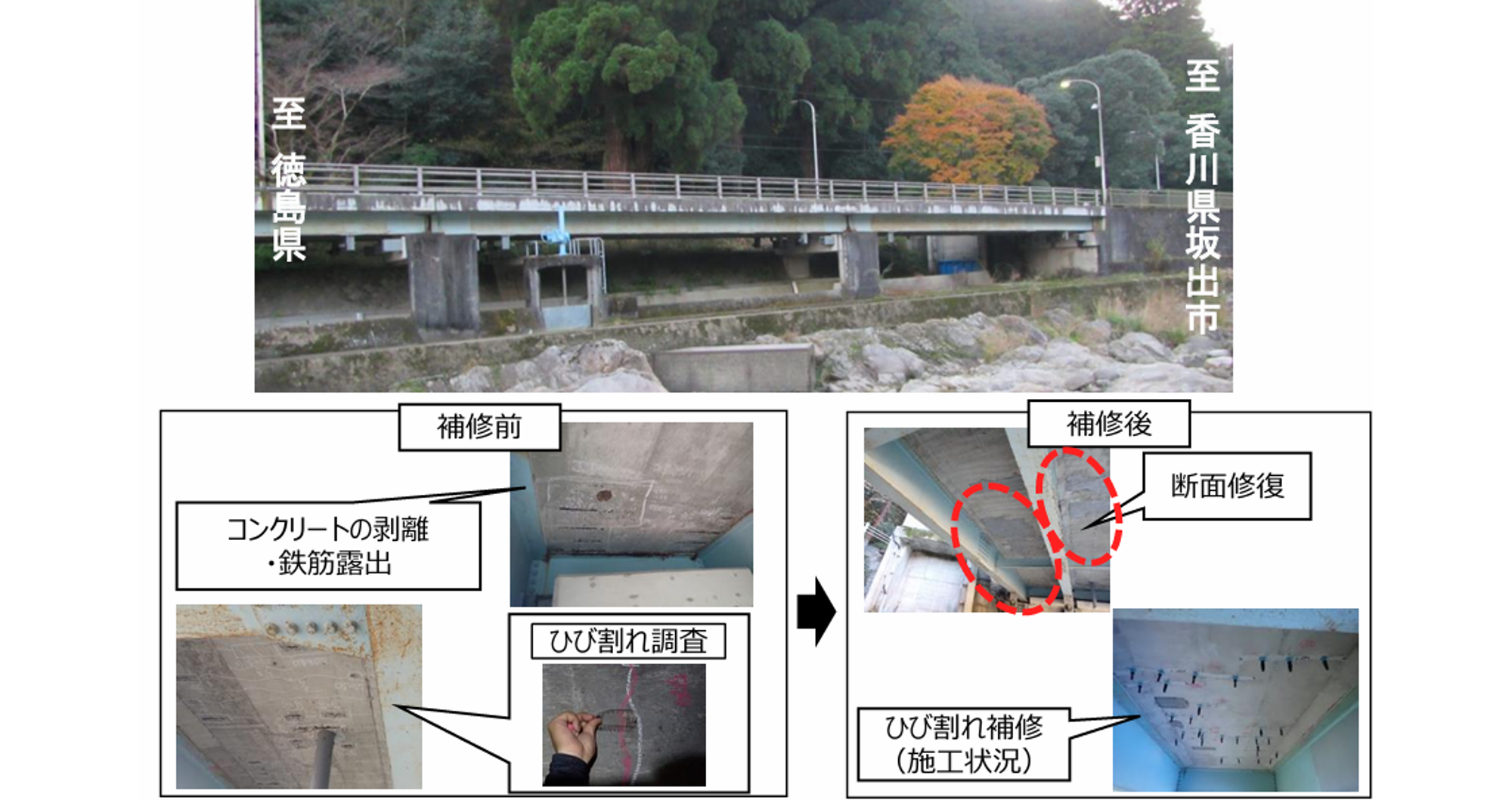 橋梁補修事業で緊急輸送道路の交通機能を確保|香川県