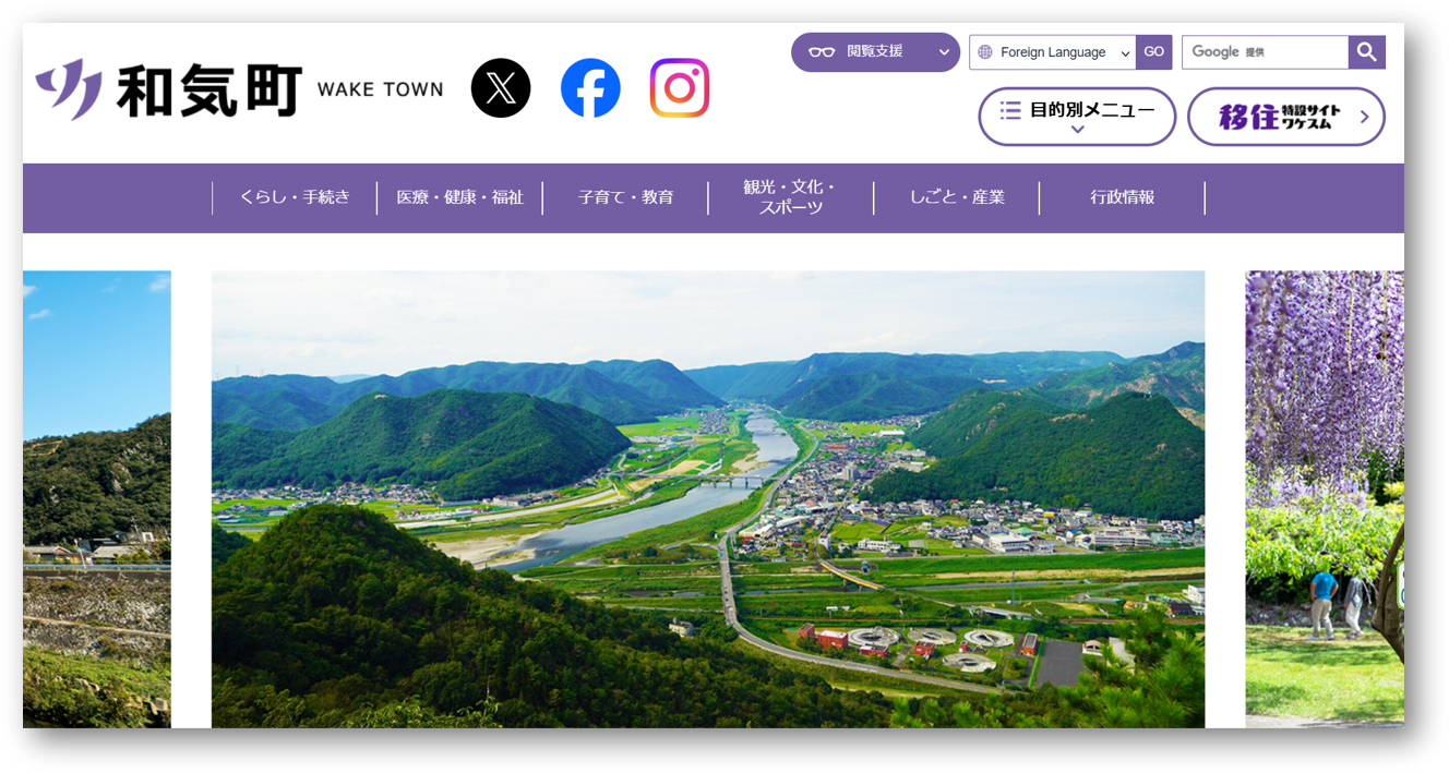 和気町のサイト(https://www.town.wake.lg.jp/)