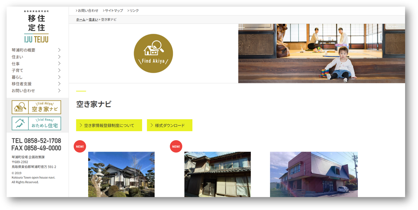 琴浦町の「空き家ナビ」(https://www.town.kotoura.tottori.jp/ijuteiju/ohnav/)