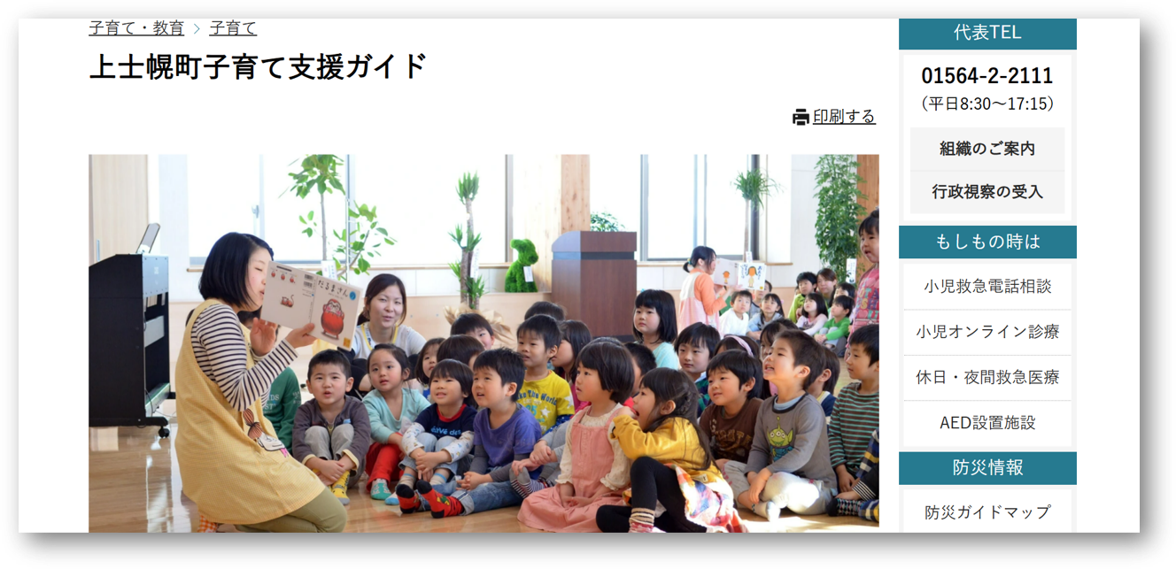 上士幌町子育て支援ガイド(https://www.kamishihoro.jp/sp/kosodate)