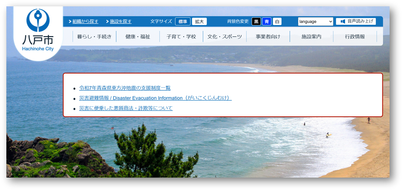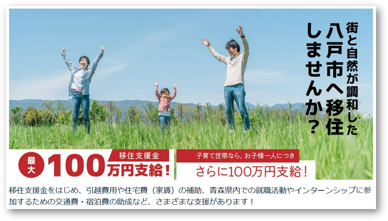 八戸市移住情報ページ(https://www.city.hachinohe.aomori.jp/ijujoho/index.html)