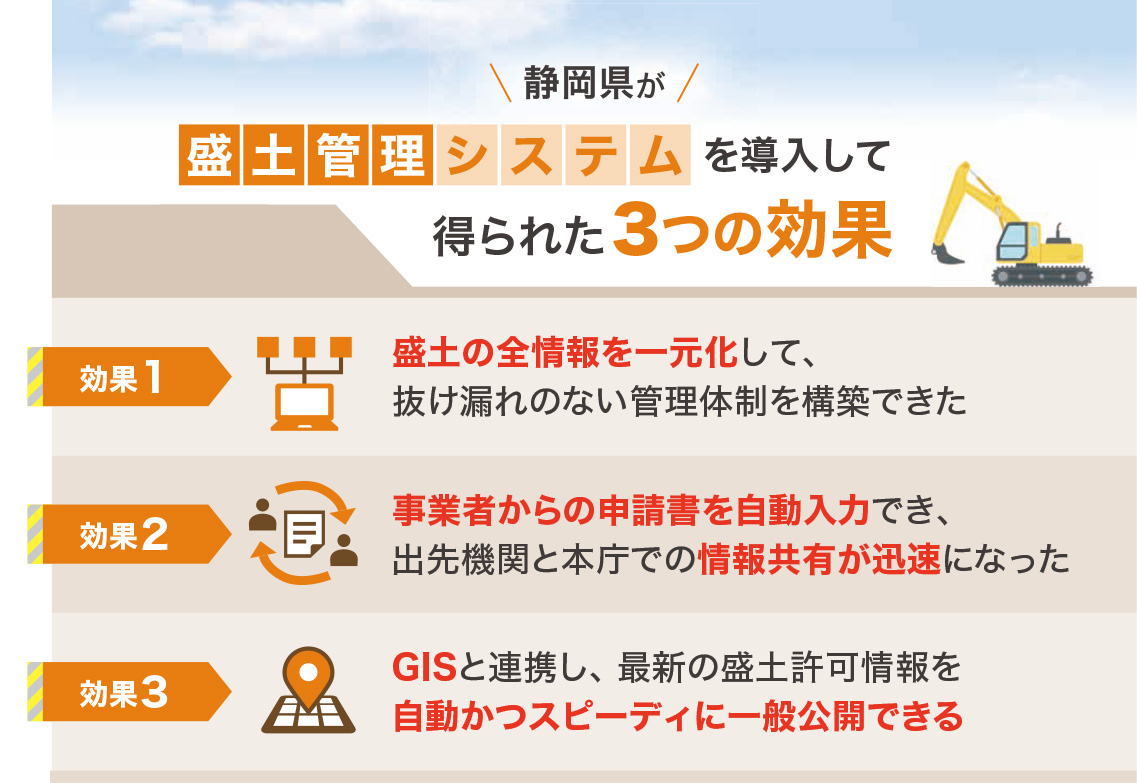 増えています。盛土規制法により、一定規模以上の盛土の許可が義務づけられたことで、審査件数が増加したほか、審査項目も細かくなりました。加えて、許可申請の認定後も、事業者から定期的に進捗状況を自治体に報告することが義務化されたことで、盛土の管理業務が複雑化・煩雑化するようになりました。多くの自治体では、そうした業務を紙やExcelなどで管理しているため、「情報を一元化して業務効率を図りたい」というニーズが増えているのです。