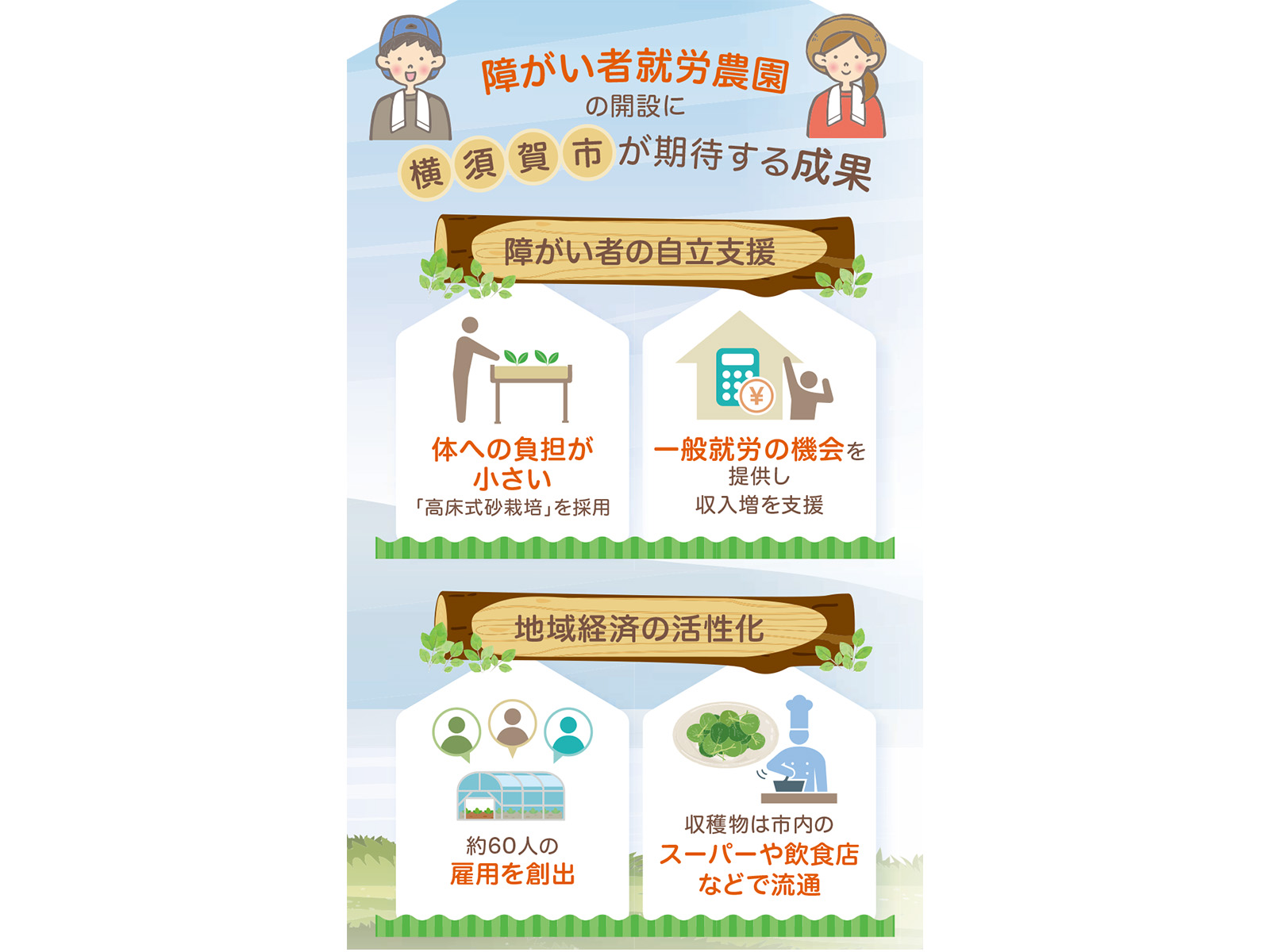 『はーとふる農園よこすか』では約60人の障がいのある方々の雇用が見込まれ、市内ではかなり大規模な一般就労の場となります。長く動かなかった土地が地域に経済的・社会的な循環を生み出す点に大きな意義があります。一般的な就労継続支援事業所での月収が2万~8万円であるなか、ここでは約15万円が見込まれるほか、収穫された作物が地元のスーパーや飲食店で消費されるなどの波及効果も期待されます。障がい者の自立を支えるこの循環型モデルは、市長が掲げる「誰も一人にさせないまち」の理念を具現化するものであり、遊休地が市民の人生を豊かにする場所に変わることこそ、この取り組みに期待する成果です。