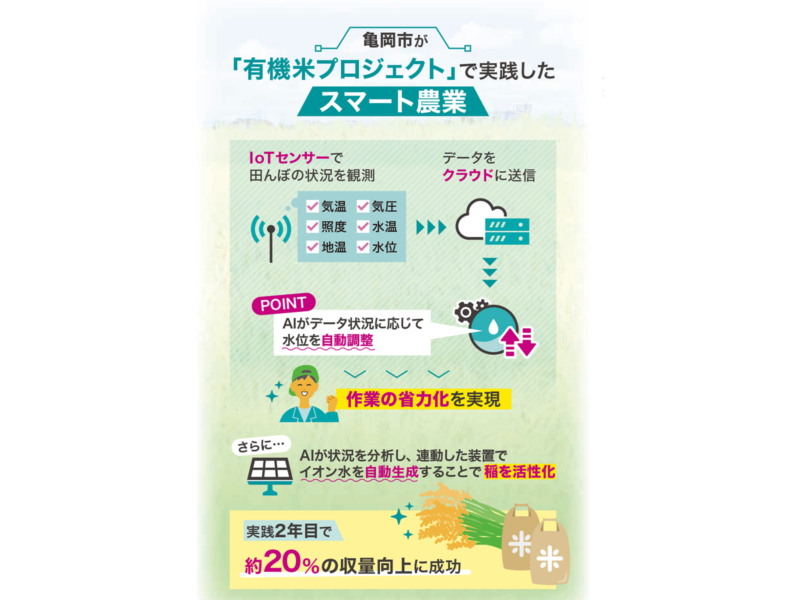 【環境にやさしい】スマート農業による有機米の栽培で、「作業の省力化」と「収量向上」を実現