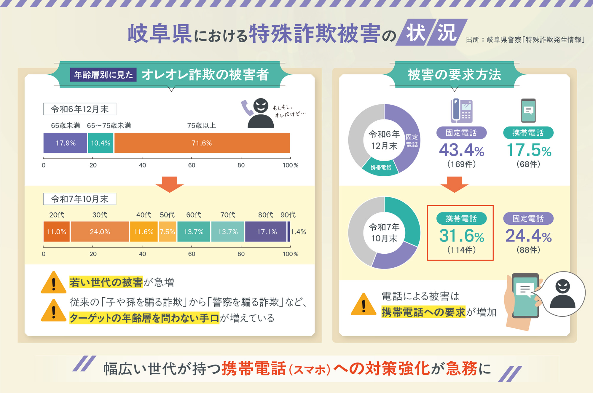 全国で特殊詐欺の巧妙化が進むなか、被害を未然に防ぐため、自治体は住民に対して具体的な防衛策を促すことがますます重要となっている。こうしたなか、岐阜県警察と岐阜市では、民間企業と連携しながら防犯アプリを住民に推奨する取り組みを進めている。取り組みの詳細や、期待する成果などについて、双方の担当者に聞いた。
