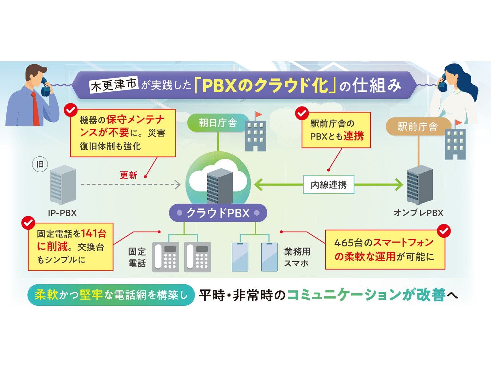 こうした成果を受け、今後の駅前庁舎の建て替えに際しても、クラウドPBXの導入を検討していきます。