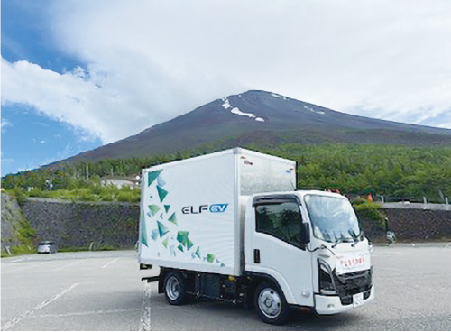 その象徴的な取り組みの一つが、山梨県の富士山五合目までをのぼる走行実証です。標高2,000mを超える急勾配の続くルートを、実際に重い荷物を積んだ状態で完走できるかを検証しました。結果として、登り坂での力強いトルクはもちろん、下り坂での回生ブレーキによるエネルギー回収効率の高さも証明することができ、高低差のある地域での運用に対する大きな自信となりました。また、資源回収の現場を想定したデモでは、実際に古紙などの資源を荷台いっぱいに満載した状態でまちなかを走行し、「ストップ&ゴー」を繰り返す実務さながらのテストも行っています。