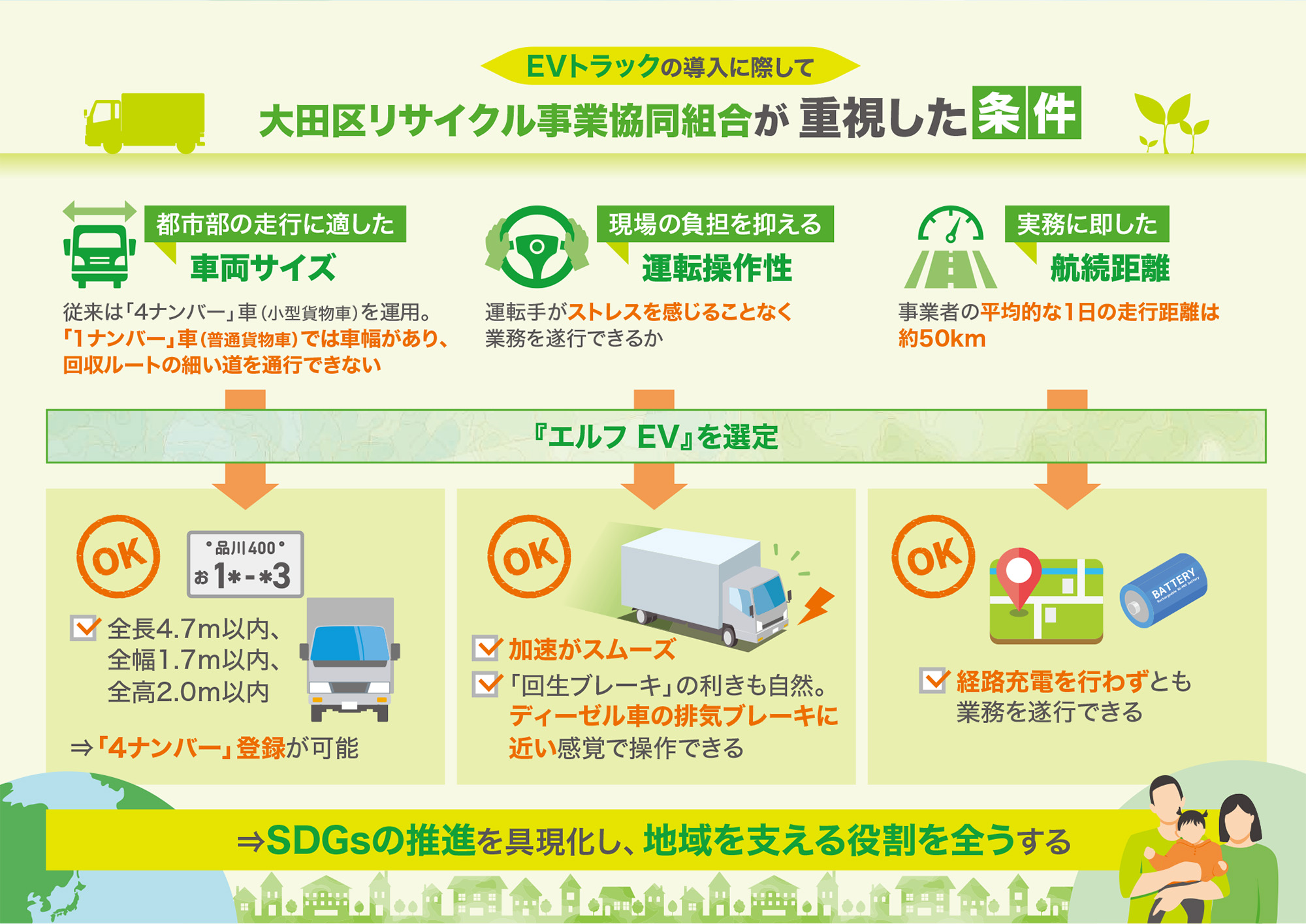 ここまでは、資源回収業務にEVトラックを導入し、安定した業務を継続させつつ、環境対応を進めている大田区リサイクル事業協同組合の取り組みを紹介した。ここでは、同組合を支援した、いすゞ自動車首都圏の担当者に取材。自治体がEVトラックを導入するにあたっての重要なポイントについて、詳しく聞いた。