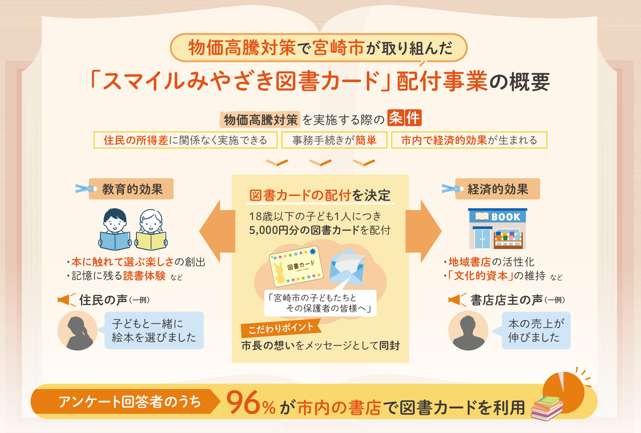 寺田 「子どもに本を買ってあげたいけどなかなか難しい」という保護者の方々には喜ばれますし、宮崎市のようにメッセージを配付の際に同封すれば、自治体から直接子どもたちへの想いを届けることが可能です。「さまざまな用途に使えます」ではなく、「本を買ってください」と限定的なメッセージだからこそ、想いが伝わりやすいと言えるでしょう。