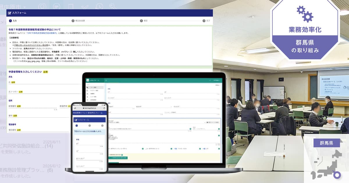 ここまで見てきた生成AI、ビジネスチャットと同様、自治体専用サービスとして現場業務を大きく変革しているツールに、「自治体専用電子申請サービス」がある。ノーコードツールの特性を活かし、各種申請手続きのオンライン化を促進することで、いま多くの自治体のDX推進に寄与しているという。共同調達のスキームを活用してこのツールを県単位で導入し、県内自治体のDXを後押ししているのが、群馬県である。同県担当者2人に、導入の経緯とその効果について聞いた。
