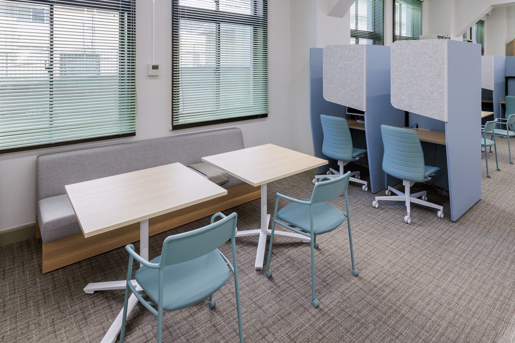 業務形態に馴染む固定席を維持しつつ、ABWエリアを導入