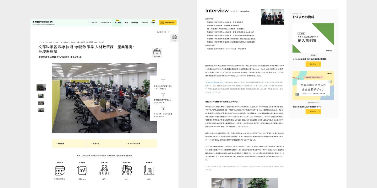 今回は、コクヨが什器レイアウトの提案・家具納品を行った「文部科学省 科学技術・学術政策局 人材政策課 産業連携・地域振興課」の事例をご紹介します。