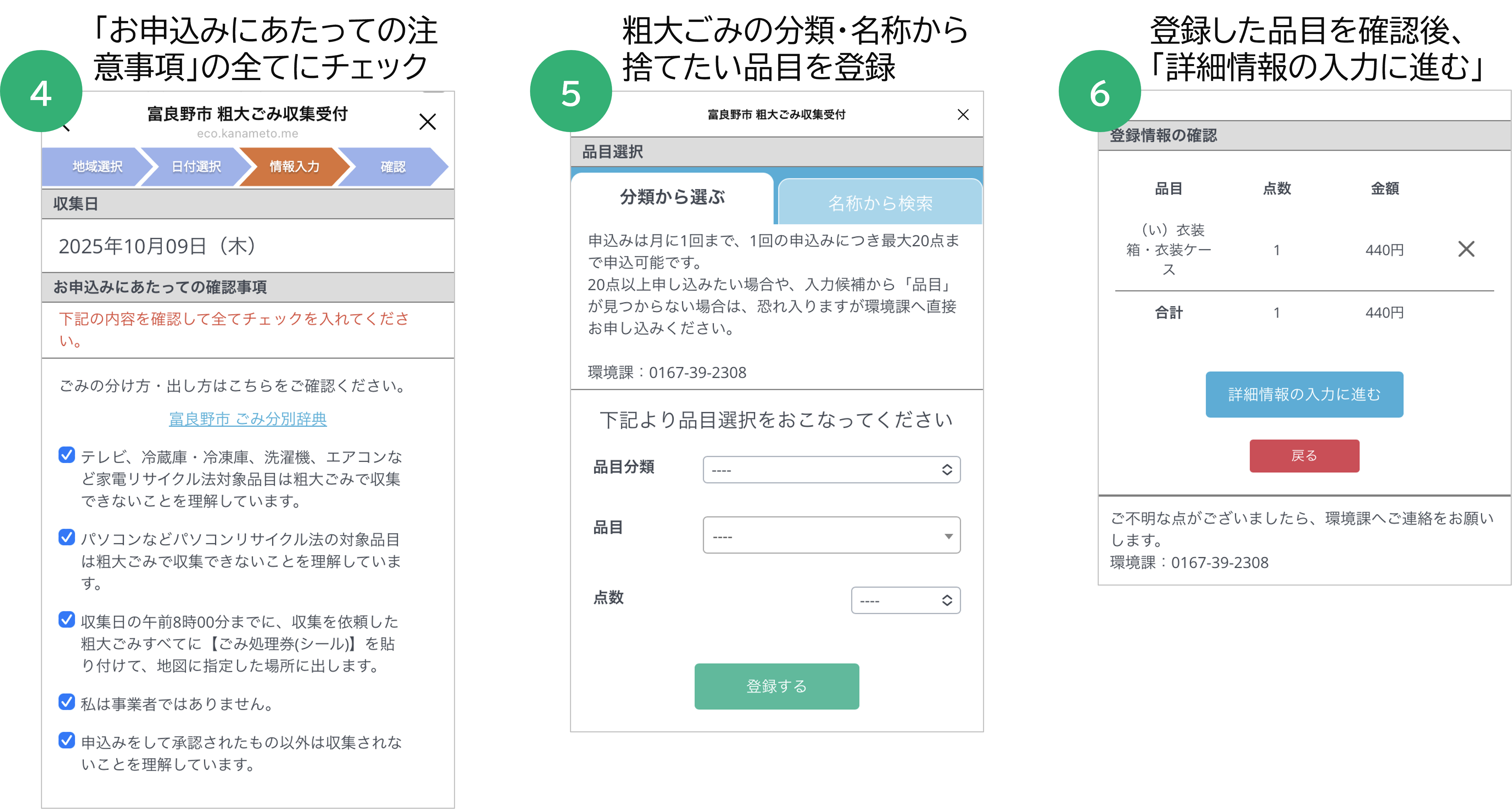 富良野市LINE公式アカウントから粗大ごみ収集を申し込む流れ