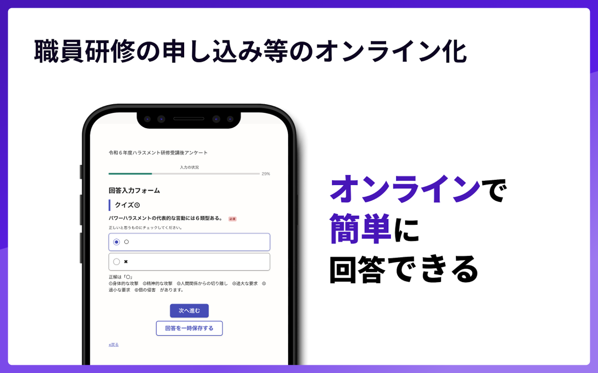職員向け研修の申し込みや事後のフィードバックの回収に「Graffer スマート申請」を活用