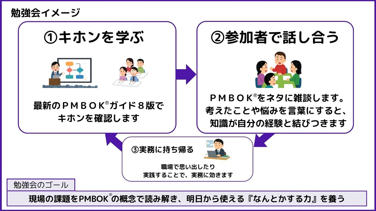 プロジェクトマネジメントの「PMBOK®(最新版:第8版)」をネタに、公務員同士でカジュアルに話す場がコンセプトの勉強会です。