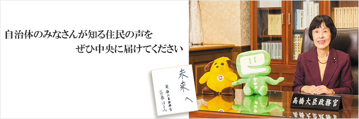 「責任ある積極財政」という政権方針のもとで、将来世代が「日本に生まれてよかった」と思える国づくりの基礎を築いていきます。その中核を担うのは、最前線で一人ひとりの住民と対峙し、その声をもっとも理解している自治体のみなさんだと思っています。自治体のみなさんはその声をぜひ中央に届けていただきたいのです。財務省としてもその声に真摯に向き合い、政策へと反映していきます。
