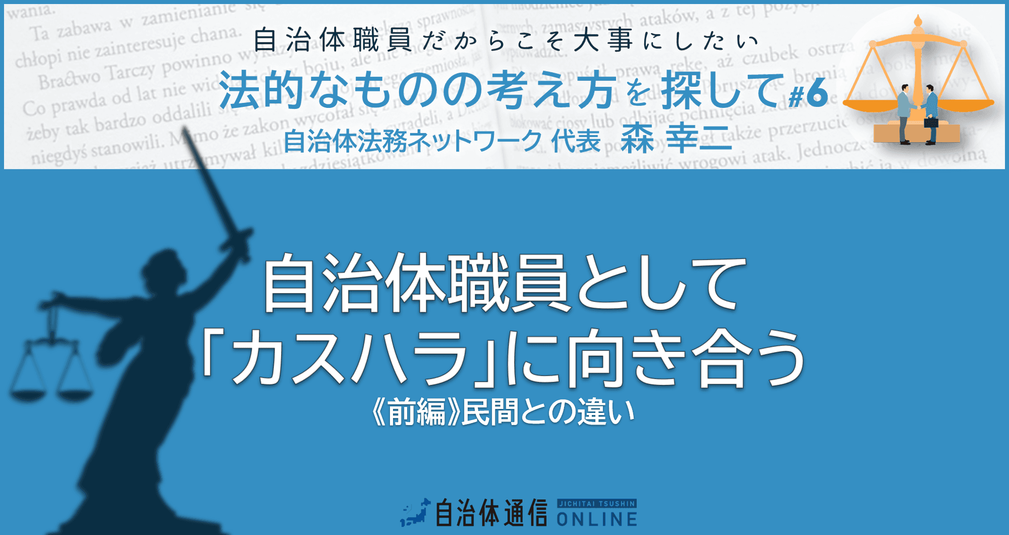 深刻化が取りざたされる「自治体とカスハラ」について、《前編》《後編》の2回にわけて考えます。前編は民間におけるカスハラの定義について、後編は自治体はカスハラとどう向き合うべきかについて。自治体向け法務研修等を500回以上行った実績がある自治体法務ネットワーク代表の森 幸二さん(北九州市職員)が深く掘り下げます。