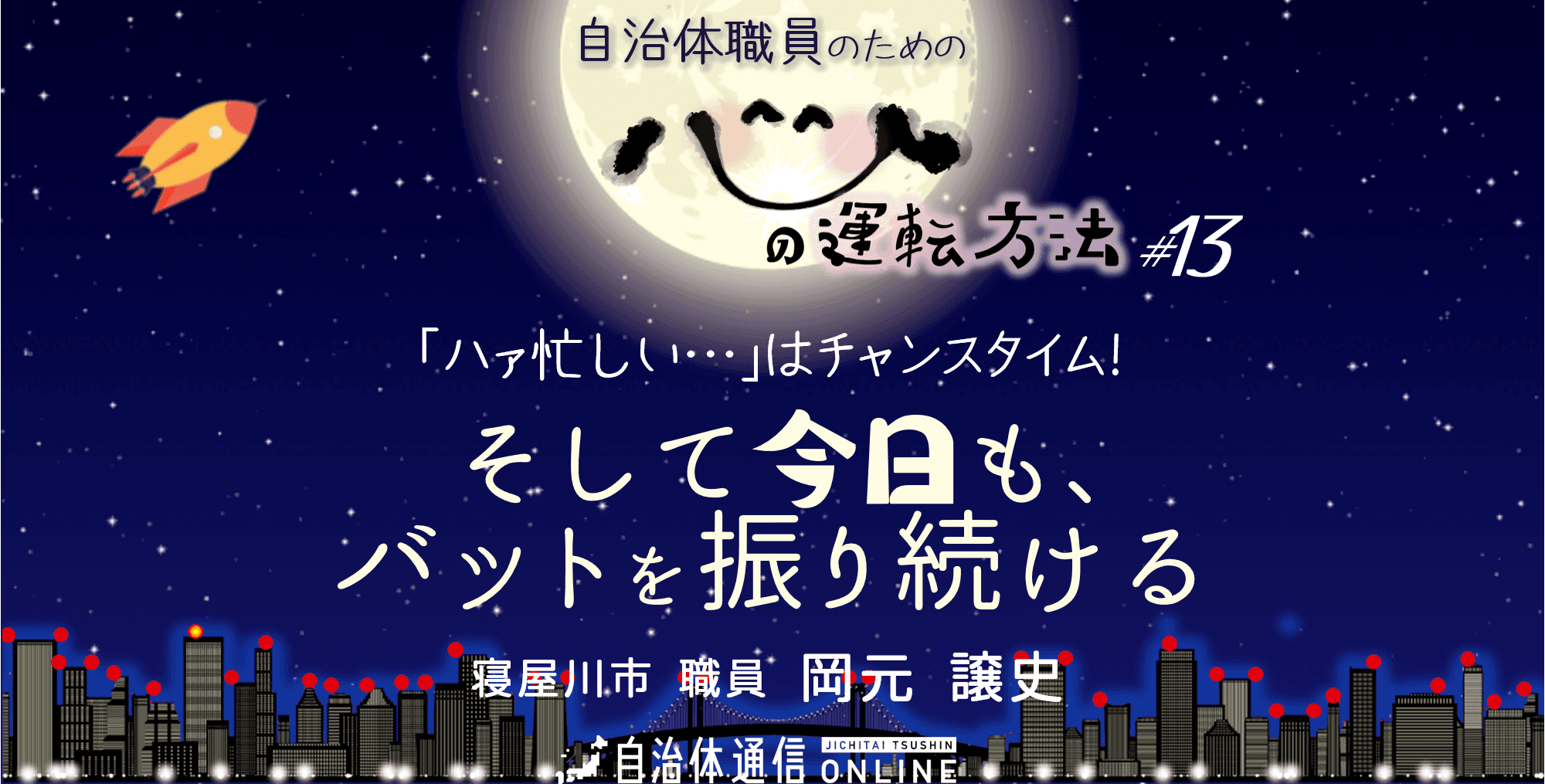 寝屋川市(大阪)職員の岡元 譲史さんが滞納整理というハードな仕事を通じて得た経験、気づきなどをシェアする本連載。今回は自身に起きた大きな環境変化を振り返りながら、激務や失敗でもショゲないよう自分をキープする心の運転方法について。重要な場面や激務をまかされている自分をまずはホメましょう!