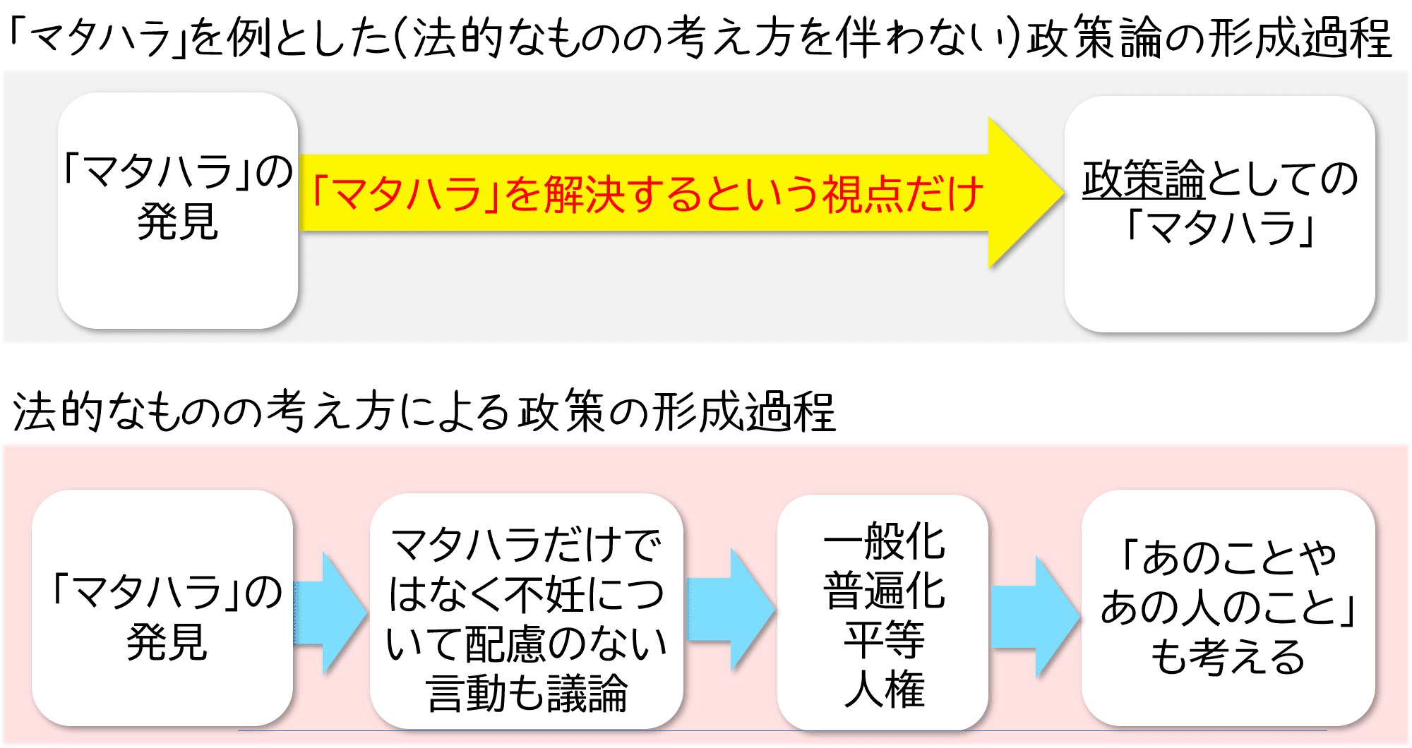 「『ハラスメント政策』の課題」の後編では、マタニティー・ハラスメント、いわゆるマタハラを例に、定説、つまり現在におけるハラスメント論やそれに基づくハラスメント政策の法的未熟(付け替えと無配慮)について考えてみましょう。