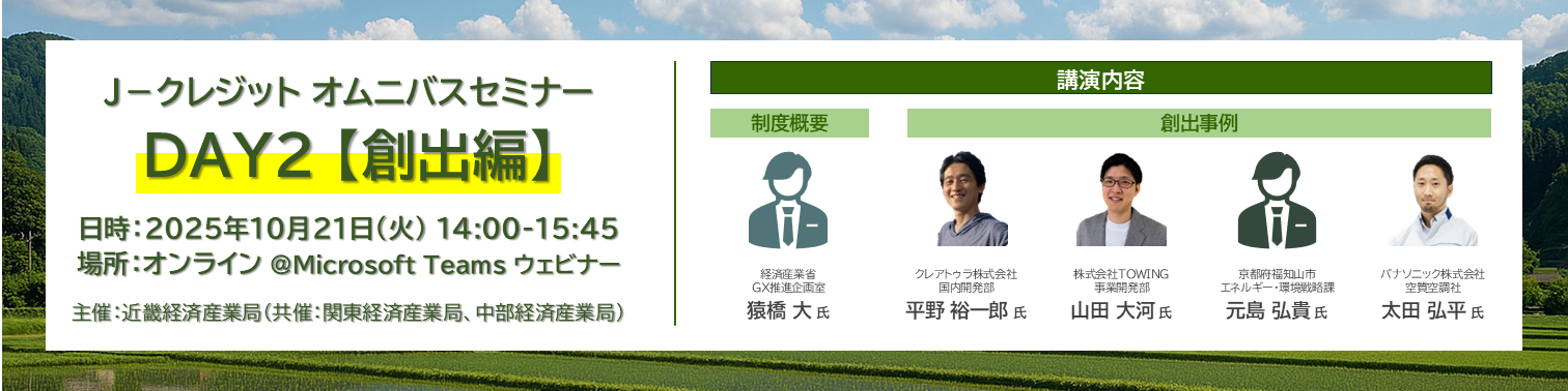 <10/21(火)開催>関東経産局×中部経産局×近畿経産局 J-クレジットオムニバスセミナー DAY2【創出編】 の開催を支援します