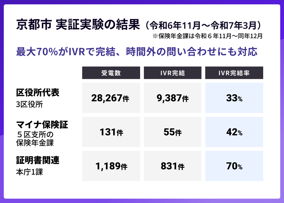 浜本(京都市):実証実験では9回線を対象にしていましたが、本導入では全14区・支所の代表電話を含む合計29回線を対象に自動音声応答の利用を開始しました。実証実験で確認できた効果をもとに、取り組みを全区に拡大しています。