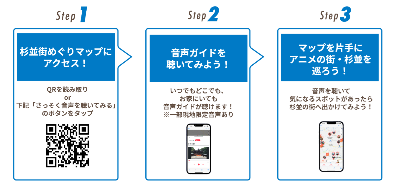 応募方法 | 1. 音声ガイド「人気声優 島﨑信長の声で楽しむ!杉並街めぐりマップ」を聞いてみよう! |